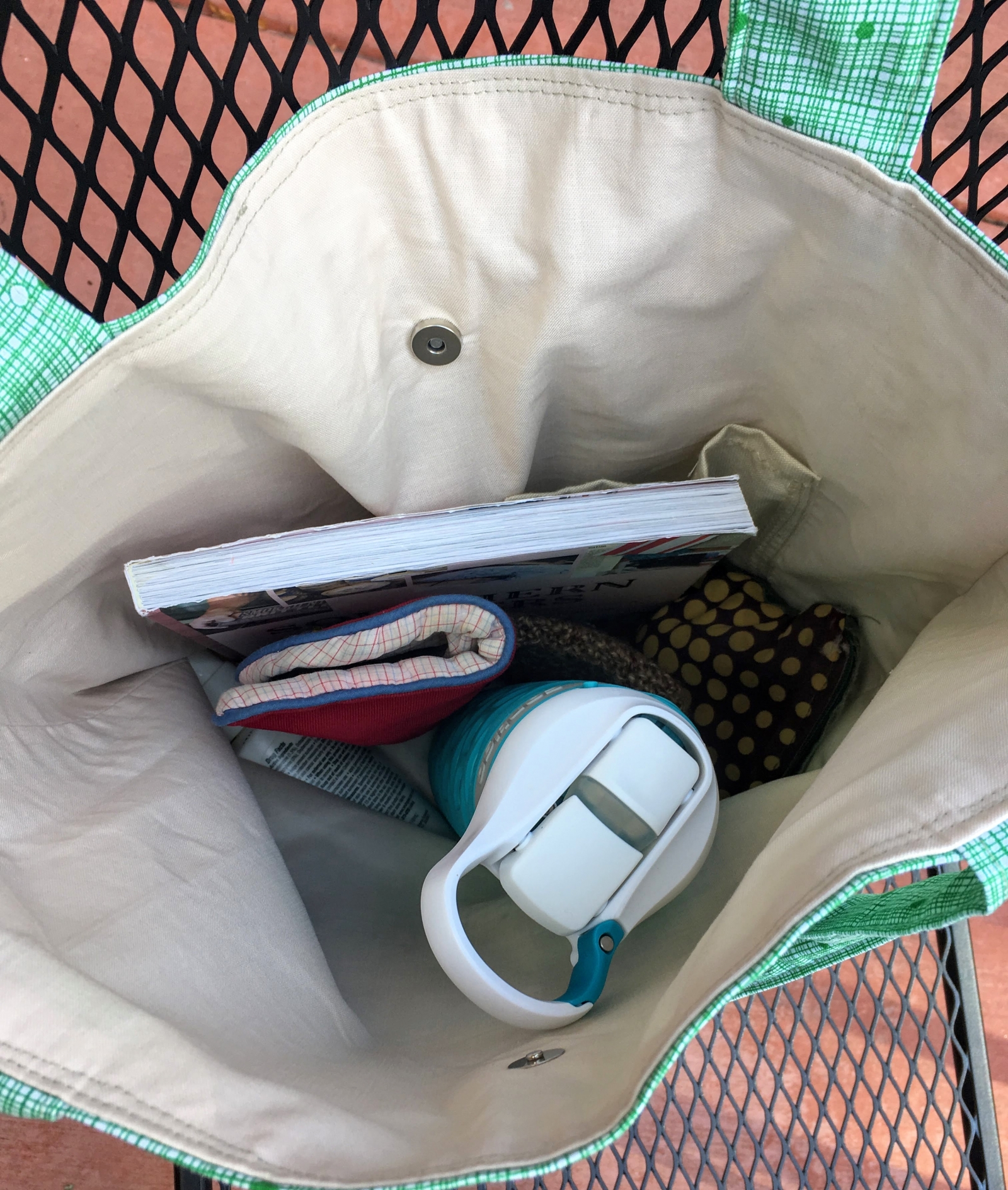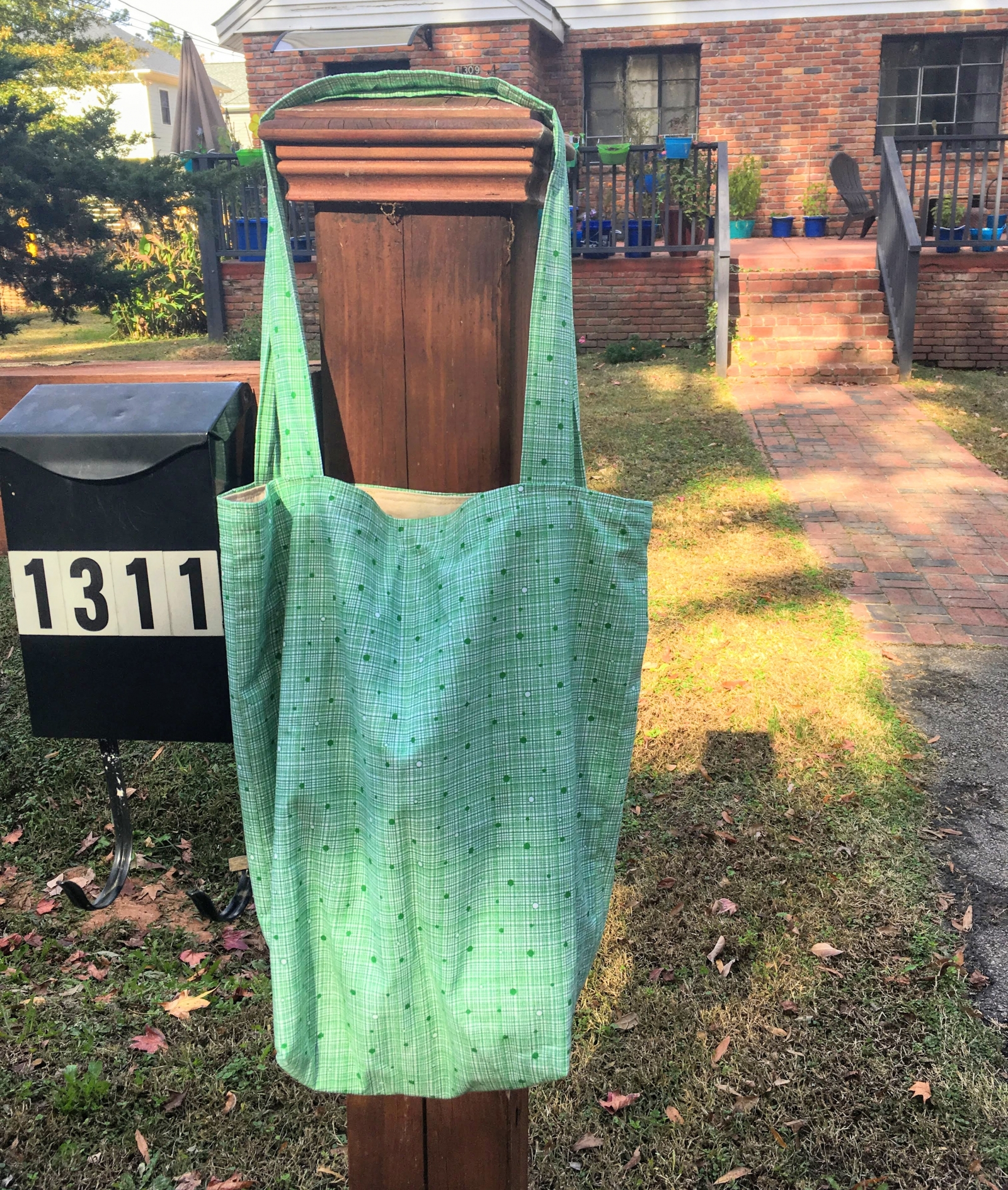 Simple cotton tote. Can be used for groceries or as a purse, whatevs.