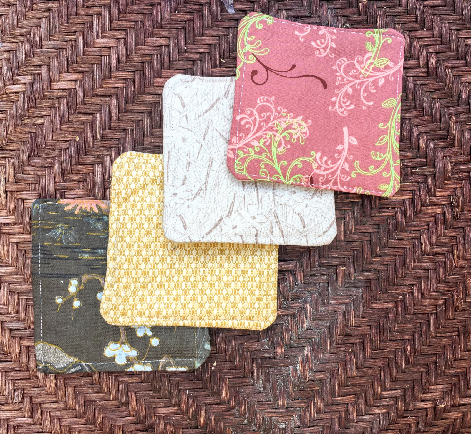 Ya know, sometimes I leave these cloth coasters outside, and they get a little rained on. They tend to dry out just fine. You can def be lazy with this set.