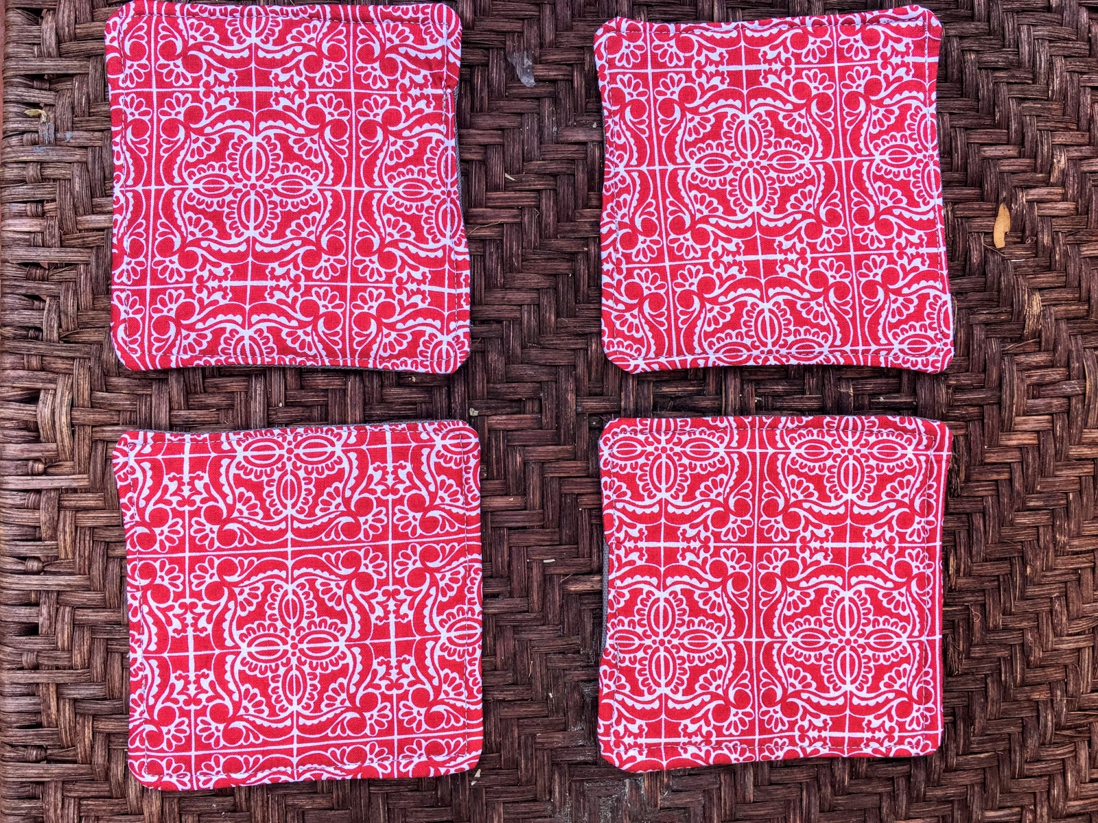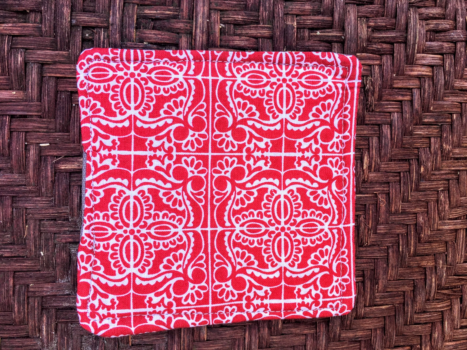I love this fabric. It's the perfect shade of red (for my taste), and the pattern is nice and geometric and sort of regal-looking.